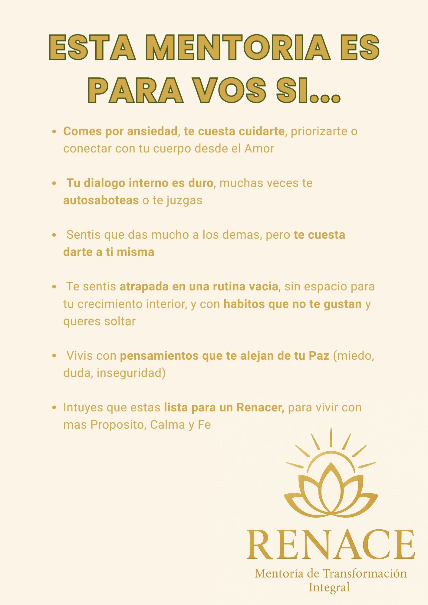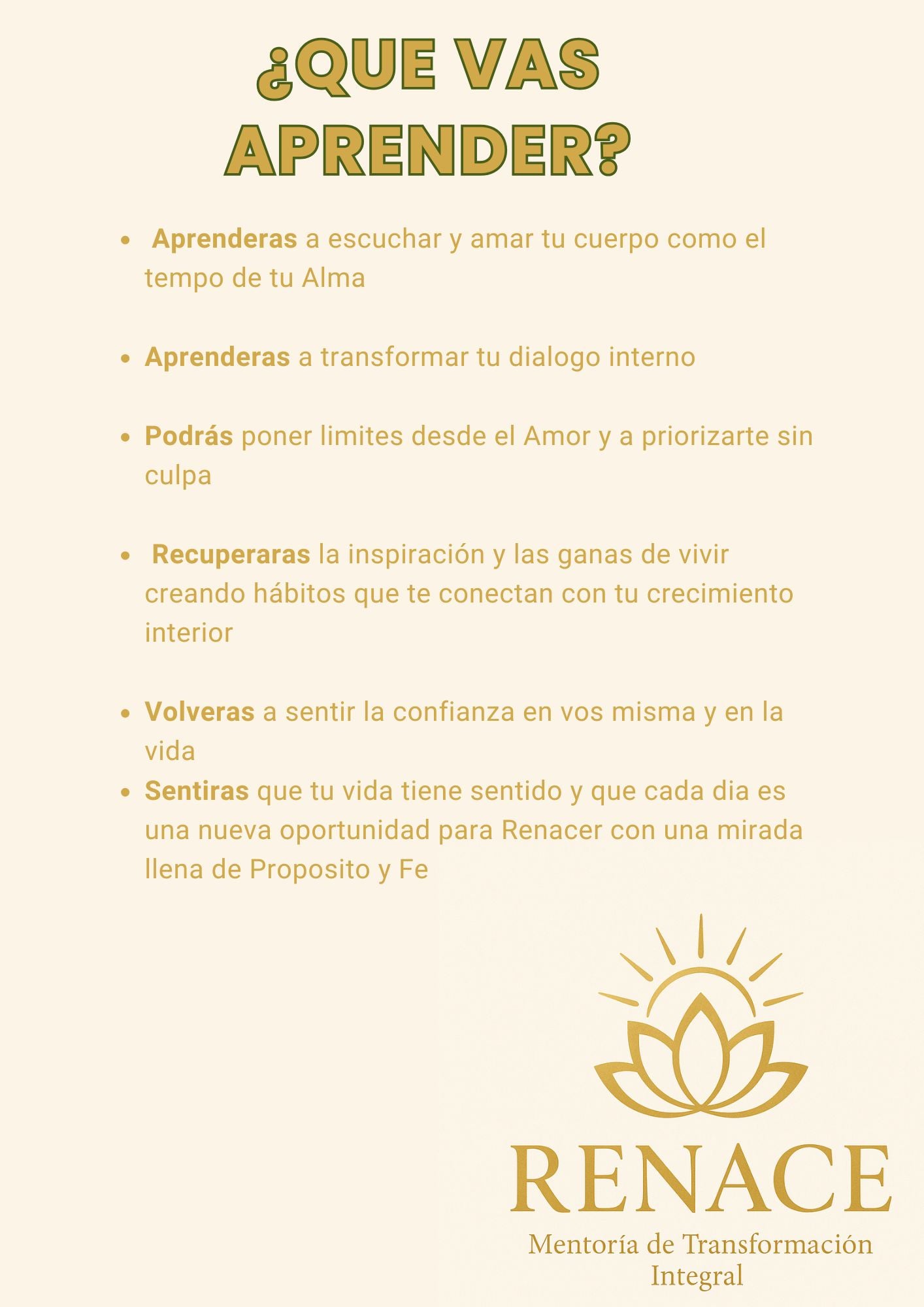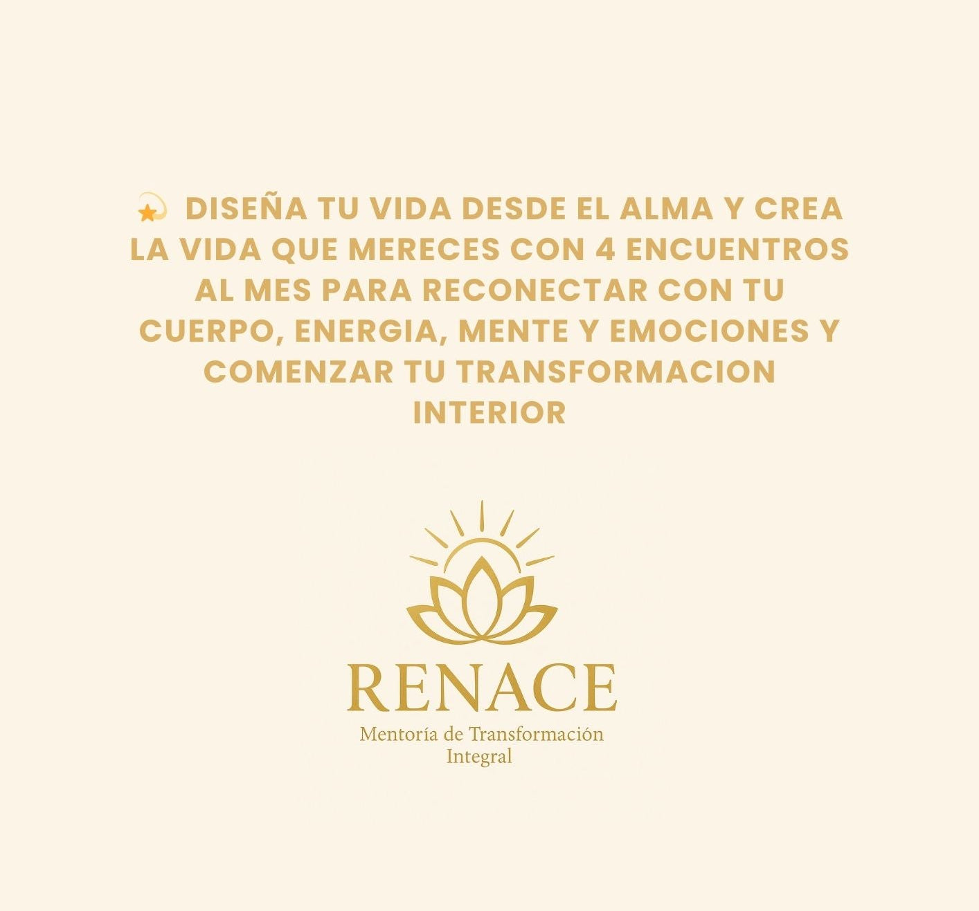 RENACE es una mentoría grupal online creada para acompañarte a transformar tu vida desde el alma.